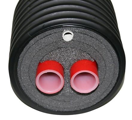 Altech præ-isoleret fjernvarme dobbelt pex rør 22x3,0mm. Inkl. 16 mm trækrør. Rulle a 15 mtr.