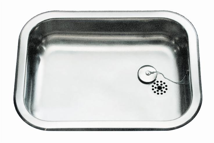 Varebeskrivelse: Enkelt kumme køkkenvask med prop til nedfældning Materiale tykkelse 0,8mm Til skabsstørrelse min. 60 cm Mat satin, rustfri stål Udvendig dimension 54x40cm Udskærings dimension 51x37cm Kumme størrelse 48x34x13cm