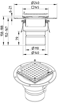 BLÜCHER Domestic-150 afløb for beton- og klinkegulve, med lodret Ø110mm udløb, med membranflange Se også relaterede varer herunder. |