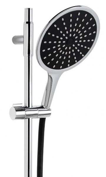 Hafa Design brusesæt - Krom/sort Bruseset i krom og sort med brusestang i metal. Sort bruserslange med AntiTwist og ekstra stort brusehoved Ø 170. Brusestang med justerbare vægbeslag 350-847 mm. Brusesetet indeholder sæbeskål.