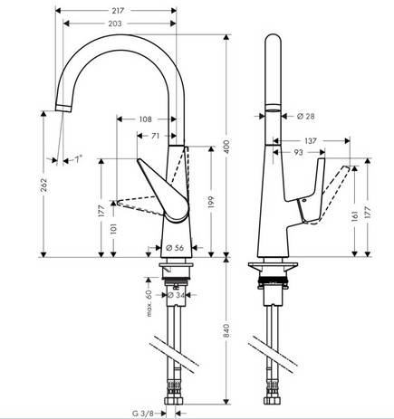 Hansgrohe Talis S 260 køkkenarmatur med svingtud - Krom Talis S køkkenarmaturet passer perfekt til ethvert køkken. Med sin koniske grundform får det en enestående elegance, og de store flader med præcise overgange er nemme at rengøre. Armaturet stråler som nyt, efter du har gnubbet luftblanderens QuickClean-silikoneindsats med fingrene. Tuden har et svingningsområde på 110°, 150° eller 360°, der gør det let at få vandet lige derhen, hvor det skal bruges. Med QuickClean antikalkfunktion samt AirPower-teknologi, der tilfører masser af luft til vandet for en blød, stænkfri vandstråle.