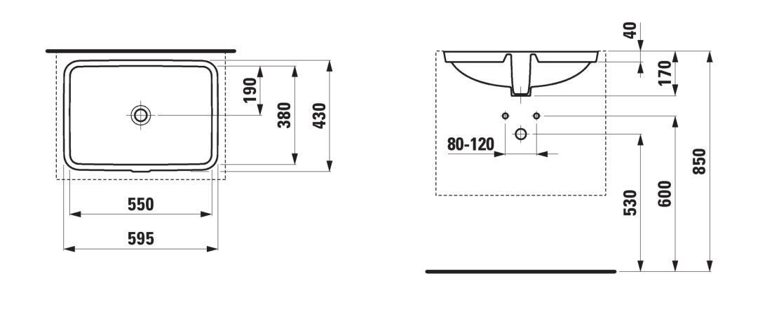 Laufen Pro S 55 håndvask t/underlimning - Med overløb Specifikationer: