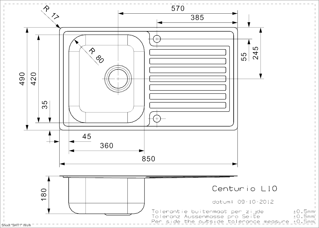 Lavabo Centurio 10 køkkenvask m/afløbsbakke