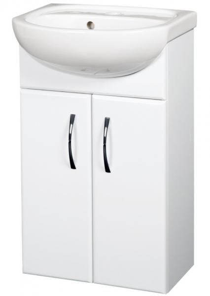 Komplet møbelsæt med skab og håndvask i porcelæn. Underskabet er i hvid højglans med to soft-close låger.
