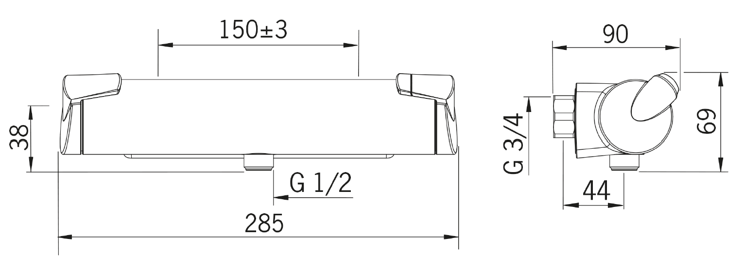 Oras Optima 7160 bruserarmatur - Krom Brusertermostat med betjeningsvenlige greb. Brugervenlig skoldningsspærre i grebet samt mængdebegrænser. Armaturet er udstyret med smudsfiltre og kontraventiler.