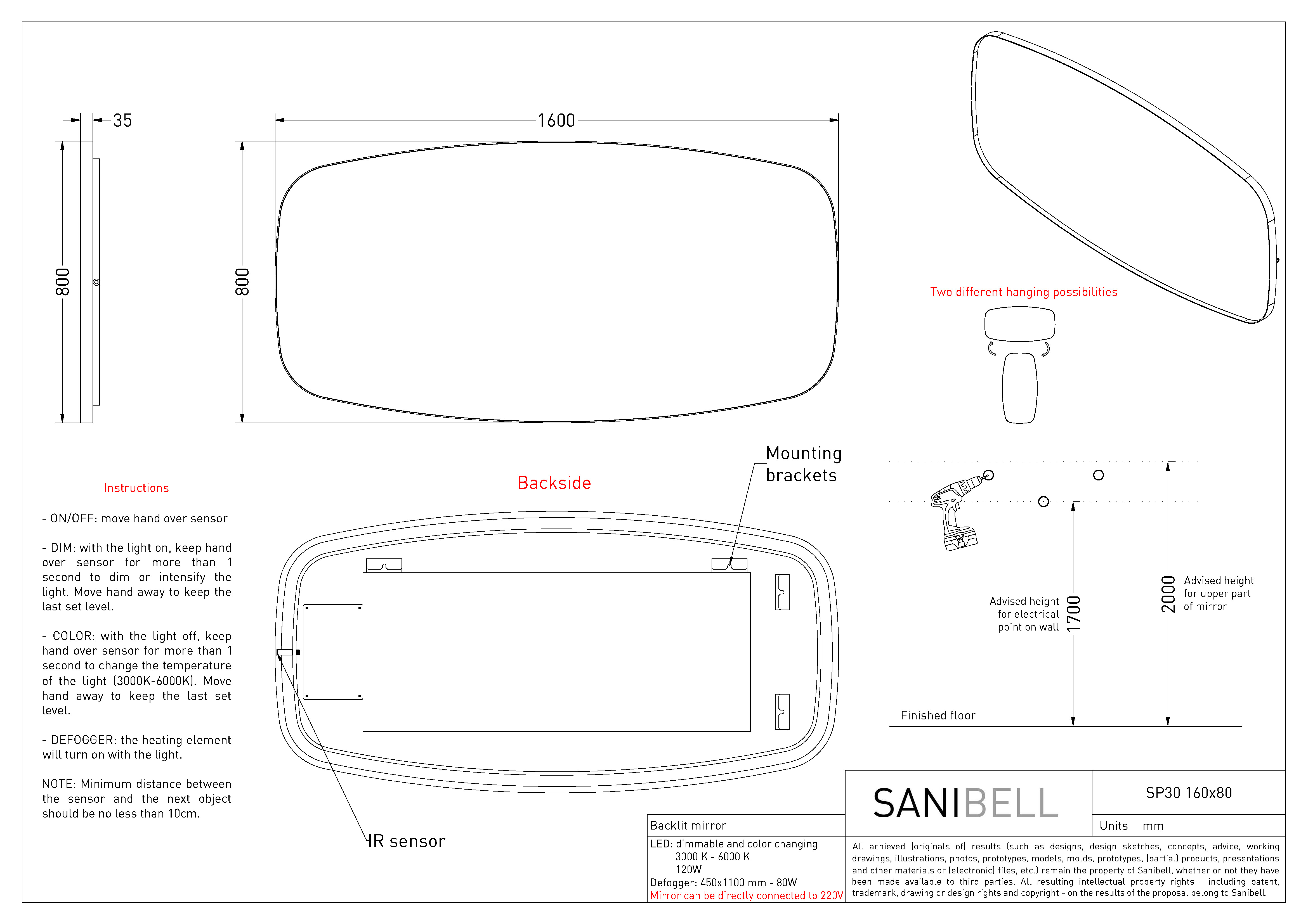 Sanibell Ink SP30 superellipse spejl m/backlight, varme og sensor 160 x 80 cm - Børstet gunmetal Sanibell Ink spejl i superellipse form: Den afrundede firkantede form er både bryder linjerne på badeværelset, men virker på samme tid samlende for det visuelle udtryk i indretningen. Spejlet er indrammet af en flot ramme, som er slank forfra, men fra siden er bredere. Spejlet lyser væggen bag sig op med sit indirekte lys, som kan justeres i både styrke og farvetemperatur ved brug af sensorkontakten i bunden af spejlet. Udover backlight har spejlet også indbygget varmefelt, hvilket betyder at du kan nyde den luksuriøse oplevelse af et dugfrit spejl - selvom om du lige har taget et langt varmt bad. Specifikationer: