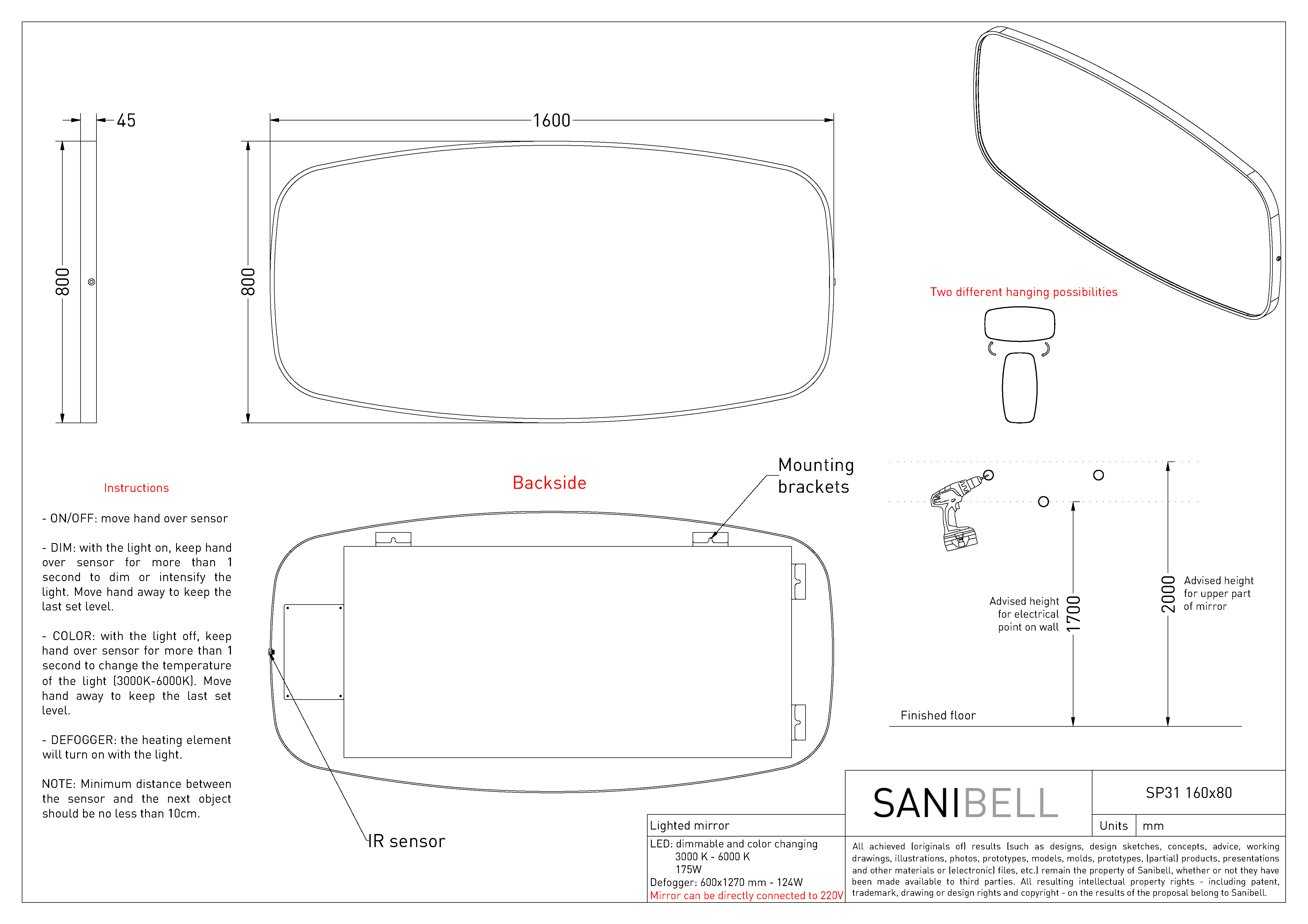 Sanibell Ink SP31 spejl m/lys, varme og sensor 160 x 80 cm - Mat hvid Superellipse-formet spejl fra Sanibell Ink med indbygget lys i rammen. Det eksklusive spejl har desuden indbygget memory funktion, så det husker forrige indstilling. Juster både lysets farve og styrke ved hjælp af den smarte touch-free sensorkontakt. Når du vælger dette spejl, kan du uden problemer bruge dit spejl, selv efter et langt, varmt bad, for spejlet har indbygget varme og er derfor dugfrit. Det rektangulære spejl kan vendes, og dermed monteres både lodret og vandret. Spejlet leveres i 6 flotte farver, så du kan fuldende indretningen på badeværelset med et spejl, der matcher både vandhane og badtilbehør. Specifikationer: