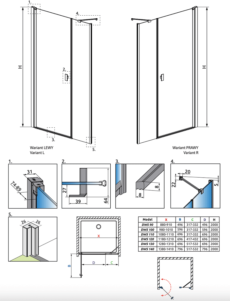 Strømberg Noma 45 svingdør m/sidepanel 1100mm - Højre - Mat sort Brusenichedør med fast sidepanel - begge med mat sorte paneler og mat sort greb på døren. Specifikationer: