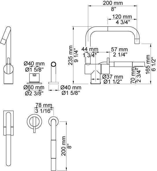 Et-grebsblander med keramisk ventilenhed og dobbelt svingbar tud samt et-grebsblander med keramisk ventilenhed, for sargmontage, 500 med håndbruser T1 Dobbelt svingbar udløb, udlæg 200 mm, Ø19 mm Krom 16 SPX |