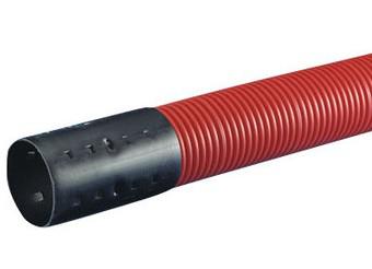 Wavin 50/42mm kabelrør med muffe PEH korrugeret/glat rød 6m